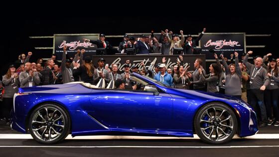 На аукционе Barrett-Jackson в городе Пеббл-Бич в США за первый серийный экземпляр модели Lexus LC 500 покупатель отдал 2 млн долларов (около 123,2 млн рублей). Об этом сообщается на сайте аукционного дома. Таким образом, проданный Lexus LC 500 стал самым дорогим автомобилем в истории японского бренда. Имя приобретателя машины не раскрывается. Компания Barrett-Jackson направит полученные с продажи машины деньги на благотворительность. Стоит отметить, что данный кабриолет — первый в премьерной линейке Inspiration. Эта серия вышла ограниченным тиражом в 100 автомобилей. За производительность самого дорогого Lexus отвечает 477-сильный атмосферный агрегат V8 рабочим объёмом 5 л. Движок работает с 10-скоростной автоматической трансмиссией и задним приводом. Также модель LC 500 выделяется мягкой складной крышей, которая может автоматически опускаться и подниматься. Скорость складывания крыши равна всего 15 секундам на скорости до 50 км/ч. Напомним, на аукционе Sotheby’s выставлен гиперкар Ferrari 512 BB, который был выпущен в 1979 году. Его мощность составляет 1100 л. с. Такую производительность модель имеет благодаря новому двигателю Testarossa рабочим объёмом 5 л. Читайте также: Названо число автомобилей премиум-сегмента в РФ, проданных в 2019 году