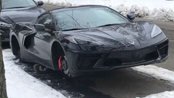 Воры сняли колеса с нового Chevrolet Corvette