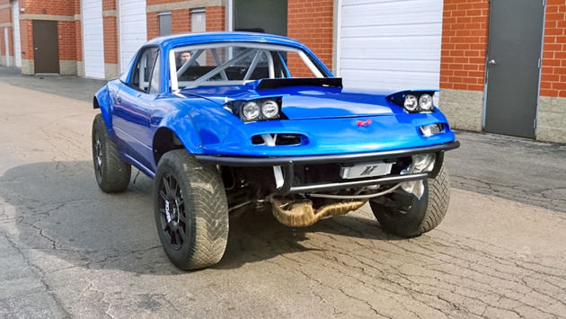 Родстер Mazda MX-5 Miata отличается легкостью и отличной управляемостью, но Калеб Сэндлунд, известный на YouTube как Gingium, хотел, чтобы спорткар был быстрым везде, а не только на асфальте. Сэндлунд владеет двумя Miata первого поколения и оба его спорткара необычны. Один из них «всего лишь» оснащен турбонагнетателем, ну а другой можно назвать автомобилем марки Mazda весьма условно. Это полноприводный монстр с многочисленными модификациями. Проект, названный AWD Lifted Miata, имеет кузовные панели родстера, но двигатель заменен на 2,0-литровый оппозитный четырехцилиндровый двигатель Subaru EJ205 объемом 2,0 л от спортседана. Серийный агрегат развивает всего 227 л.с. и 294 Нм, что владельца внедорожника явно не устраивало. Он оснастил его более производительным турбонагнетателем, интеркулером увеличенного размера, новой топливной системой, спортивной выпускной системой, усиленным сцеплением и разместил радиаторы в задней части автомобиля. Еще одной особенностью является длинноходная подвеска, явно не имеющая ничего общего с серийной, — подразумевается, что AWD Lifted Miata сможет быстро ездить по разному покрытию, словно дакаровский снаряд. За многочисленными переделками легко не придать особого значения цвету, а ведь автомобиль окрашен в субаровский синий колер неспроста!