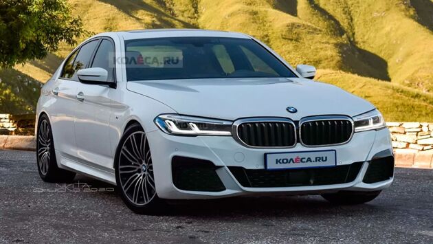 Дизайнерами в Сети представлено своё видение обновлённой версии 5 Series G30 от компании BMW. Ряд новых шпионских снимков современной обновлённой вариации G30 появились в глобальной Сети ещё в начале апреля месяца. Воспользовавшись имеющейся информацией, а также шпионскими фотографиями, дизайнеры, работающие в издании «Колеса.ru», решили поделиться с автолюбителями рендерными изображениями новой модели. Седьмая генерация 5-Series, получившая кузов G30, была представлена в 2016 г. При этом реализация новинки стартовала в 2017 г. Обновленная вариация седана должна получить увеличенную радиаторную решётку. При этом очертания машины не изменятся. Авто оснастят новой оптикой, которая станет немного тоньше. В ней предусмотрена светодиодная начинка, благодаря появлению L-образных специальных элементов. Авто похвастается полностью новым передним бампером, имеющим более крупные воздухозаборники, ряд декоративных выштамповок, перекликающихся со светодиодными элементами фар и разъёмом автомобильного капота.
