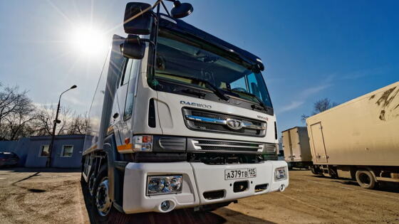 Компания Daewoo Trucks передала в тестовую эксплуатацию X5 Logistics, входящей в состав X5 Retail Group, фургон-рефрижератор на шасси Daewoo Novus 8×4. Автомобиль, оснащенный автономной холодильно-обогревательной установкой и гидробортом, предназначен для перевозки товаров повседневного спроса: замороженных, скоропортящихся пищевых продуктов, косметики, лекарственных препаратов и других, которые должны транспортироваться с сохранением определенных температуры и влажности воздуха. Фургон-рефрижератор был изготовлен впервые специально для X5 Retail Group. Основными требованиями заказчика стали наличие задней пневматической подвески и кабины со спальным местом. Особое внимание было уделено вместимости кузова и грузоподъёмности. Длина машины составляет 11,99 метра, полная масса – 36 тонн. Значительными преимуществами автомобиля являются повышенная грузоподъемность (23, 01 тонны) и большой объем кузова (53,3 куб. м). Автомобиль оборудован 6-цилиндровым двигателем Doosan DV11K экологического класса «Евро-5» и механической 16-ступенчатой коробкой передач ZF16S1830TO с сухим однодисковым сцеплением. Рабочий объем мотора – 10 964 куб. см, мощность – 420 лошадиных сил. Кузов представляет собой изотермический фургон вместимостью 22 европаллеты. Его габариты – 9 200 × 2 600 × 2 650 мм. Стены и крыша фургона изготовлены из монолитных самонесущих панелей с обшивками из оцинкованного плакированного металла толщиной 0,55 мм. В качестве наполнителя использован пенополиуретан. Фургон также оснащен гидробортом DHollandia DH-LM.20 с алюминиевой платформой грузоподъемностью 1,5 тонн. Управление производится с помощью двух пультов: выносного на гибком кабеле и закрепленного на задней правой стороне фургона.