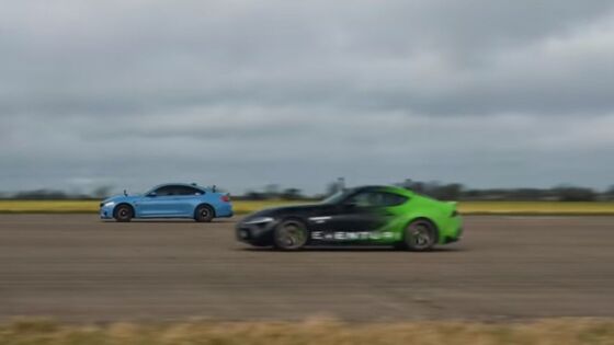 В Сети опубликовали видео, демонстрирующее разгонные и тормозные динамики версий M4 F82 от BMW, а также Supra GR, от бренда Toyota, после небольшого тюнинга. За счёт модернизации производитель практически уровнял мощностные характеристики, а также стоимость двухдверных моделей с задним приводом. При этом стало интересно, обгонит ля японец немца на 500-метровой дистанции мили. Дебют M4 состоялся в 2014 году. Авто оснащается рядной трёхлитровой «турбошестёркой» S55 на 431 л.с. Силовая установка работает вместе с семиступенчатым «роботом». Вес BMW составляет 1 645 кг. Немец на 75 килограмм весит больше японской модели. Стоимость M4 составляет 66 500 фунтов стерлингов (около 6 270 000 руб.). «Стоковая» версия GR от компании Toyota получила рядную трёхлитровую «турбошестёрку» B58 от BMW на 340 лошадок. Мотор функционирует вместе с АКПП на 8 скоростей. Благодаря замене выхлопной системы, а также чип-тюнинга, мощность была увеличена до 440 лошадок. Стоимость Supra составляет 60 000 фунтов стерлингов (около 5 650 000 руб.). З счёт небольшого тюнинга шансы Toyota, а также BMW были уровнены. Четверть мили обе версии смогли преодолеть за 12,3 сек. При этом немец на долю секунды был быстрее.