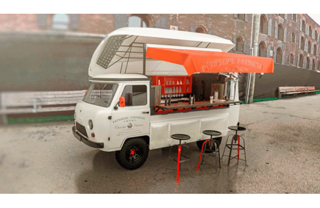 На базе цельнометаллического фургона УАЗ 3303 российская компания «Люкс Форм» создала передвижное кафе. Об этом сообщается на сайте производителя. Специалисты компании переделали кузов «Буханка», заменив обычную крышу на стеклопластиковый колпак. Под обновленной крышей скрыт боковой навес-маркиза. При этом левый борт машины можно откинуть. Внутри располагается маленькая кухня. Когда колпак поднимается, левый борт можно откинуть и выдвинуть навес. В результате получается мини-кафе. Автомобиль оборудован генератором на 12 кВт, к которому подключены холодильник и прочее кухонное оборудование. Все остальное осталось в машине осталось нетронутым. Пока стоимость фудтрака на базе «Буханки» не сообщается. Ранее компания «Люкс Форм» переделала «Буханку» в автомобиль для путешествий. Читайте также: УАЗ получил ОТТС на битопливный УАЗ «Патриот»