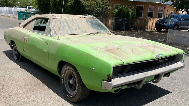 В одном из гаражей города Альбукерке, США, обнаружили зеленый Dodge Charger второго поколения, сошедший с конвейера в 1968 году. Уникальности этой находке добавляет тот факт, что автомобиль находится полностью в заводской краске и имеет под капотом редкий двигатель. В гараже под кучей мусора нашли 55-летний Chevrolet Corvette Dodge Charger окрашен в редкую заводскую краску, которая сочетает в себе основной зеленый цвет и черные полосы поперек задней части кузова. Автомобиль с 2003 года хранился без движения в заваленном хламом гараже, пока не был обнаружен коллекционером американских маслкаров. Заднеприводное купе второго поколения оборудовано редкой модификацией двигателя: 6,3-литровым V8, который выдает мощность 294 лошадиные силы и 529 Нм крутящего момента. Несмотря на то, что Dodge при находке оказался покрыт толстым слоем пыли, у него были спущены колеса, а сам автомобиль находился не на ходу, по словам хозяина маслкара, помимо топливного насоса, который требует замены, все штатные агрегаты «Чарджера» находятся в исправном состоянии. Второе поколение Dodge Charger выпускалось с 1968 по 1970 года. Рестайлинговый Charger получил новый кузов типа «хардтоп-купе». Кроме того, у модели была полностью заменена передняя оптика – вместо убирающихся фар были установлены статичные, которые комплектовались крышками и вакуумным приводом. Максимальная скорость маслкара с данной модификацией двигателя составляла 183 километра в час, а до «сотни» автомобиль мог разгоняться за 7,3 секунды. В начале мая в лесу штата Нью-Йорк обнаружили кладбище Dodge Charger 60-х годов. Поскольку за годы, проведенные без движения, автомобили буквально вросли в землю, маслкары находятся в ужасном состоянии. Источник: Instagram/@mopars5150 Найдено в сарае