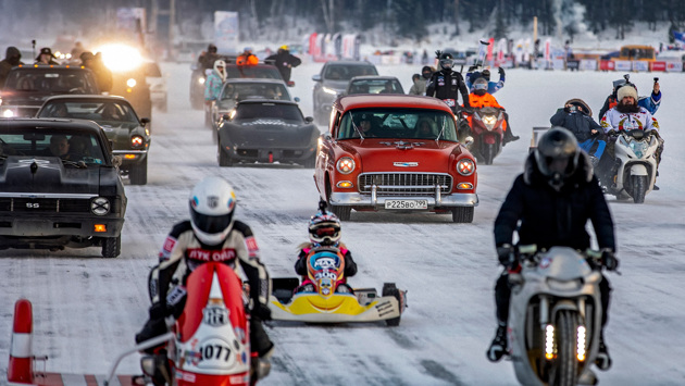 В этой галерее мы собрали самые интересные автомобили «Байкальской мили 2020». Что это за фестиваль и как он возник, можно прочитать [здесь](https://motor.ru/reports/baikalmile2019.htm). Если в прошлом году энтузиасты скорости чаще всего выходили на старт на двух колесах (хотя случалось, что на трёх и даже на одном), то теперь в тусовку мотоциклистов влились автомобильные кастомайзеры. Пока на другом берегу Байкала свои рекорды [устанавливала](https://motor.ru/reports/ice-speed-records-2020.htm) в основном заводская техника, в Максимихе (это поселок в Баргузинском районе Республики Бурятия) лёд полировали автомобили, которые не получится купить в автосалоне. Роман Черенков на Nissan Micra 1994 года развил скорость… 21 километр в час. Это какой-то антирекорд. Если не учитывать, что всю дистанцию он преодолел на двух колесах. Создатель этой машины точно знает: пятое колесо не лишнее и даже не запасное. Оно для подстраховки. Гэри О'Киф из Ирландии на «Буханке» УАЗ-452 развил скорость 102,7 километра в час. Но эта величина не так уж и важна — круто, что знаменитая ирландская команда путешественников заглянула на Байкальскую милю и даже приняла участие в заездах. Да, на УАЗе действительно номера Ирландии — глаза вас не обманывают. Международная команда The Baikal Project — это шесть мотоциклов и один автомобиль (та самая «Буханка»), которые вместе со съемочной командой BBC пересекли замерзший Байкал по самой длинной хорде, преодолев более 800 километров. Тем, кто смотрит автомобильные шоу на YouTube, этого монстра, наверно, представлять не надо. Это Bentley Continental GT на гусеничном ходу питерского блогера Константина Заруцкого (для всех он АкадемеГ), и называется он Ultratank. Bentley Ultratank Гусеницы — это еще не всё. Двигатель здесь — тойотовский V8 с турбонаддувом мощностью более 400 лошадей. Максимальная скорость, которую развил Bentley-франкенштейн — 123,6 километра в час Вот эта странная машина называется ГАЗ М1 Hyperion. Впрочем, и ГАЗу, и М1 она приходится разве что дальним родственником, и известно про её не очень-то много (создатели не рассказывают технических продробностей). Рамный внедорожник построен питерским тюнинг-ателье Truck Garage, которое специализируется на доработках полноразмерных американских пикапов. Рискнем предположить, что упомянутый в 6,2-литровый мотор – это V8 от Chevrolet. Коробка передач – автоматическая. На выезде с мили 530-сильный Hyperion развил скорость в 173,6 километра в час. Несложно догадаться, что еще один внедорожник в газовской стилистике — тоже работа ателье Truck Garage. Проект по мотивам «Победы» ГАЗ 20 назвали Алиса. Под капотом уже 530 сил и также автоматическая коробка. «Победа»-Алиса показала впечатляющий результат на дистанции в 1 милю: 189,5 километра в час ГАЗ-24 «Волга КГБ» — проект Гурама Инцкирвели, ведущего канала DSC Off о быстрых автомобилях. Это действительно серьезная машина мощностью более 700 лошадиных сил с двигателем 2JZ GTE. Классика жанра! Увы, показать действительно высокую скорость Волге помешала поломка. И все же зафиксированный результат — 225,6 километра в час! Этого оказалось достаточно, чтобы занять шестую строчку в автомобильном зачете. Еще одна классическая Волга на льду — двадцать первая! На Байкал она прибыла вскоре после выступления на историческом Ралли Монте-Карло. Мы подробно [рассказывали](https://motor.ru/reports/volga-monte-carlo-2020.htm) о подготовке и технической начинке российских машин. Титулованный гонщ