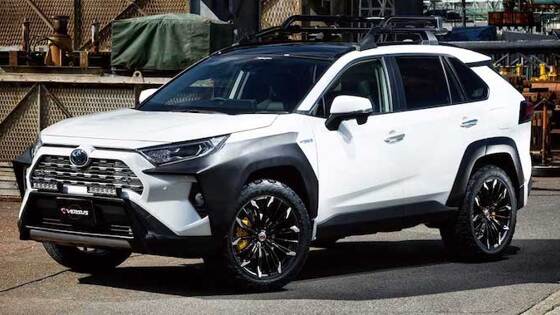 Фото: Versus Тюнинг-ателье Versus доработало пятое поколение японского кроссовера Toyota RAV4. В рамках модернизации, направленной на возможность установки на эту модель модных колес фирмы Rays, тюнеры расширили колесные арки автомобиля. На RAV4, запечатленном на фотографиях, установлены 20-дюймовые диски «Triaina», но покупатели колес могут выбрать варианты с таким же дизайном на 18- и 19-дюймов. Помимо расширенных колесных арок с массивными черными накладками доработанный Versus кроссовер оснащен двумя небольшими светодиодными люстрами под радиаторной решеткой, а также выкрашенными в ярко-желтый цвет тормозными суппортами. Стоимость тюнинг-кита, как и цена колесных дисков «Triaina» – не уточняется.