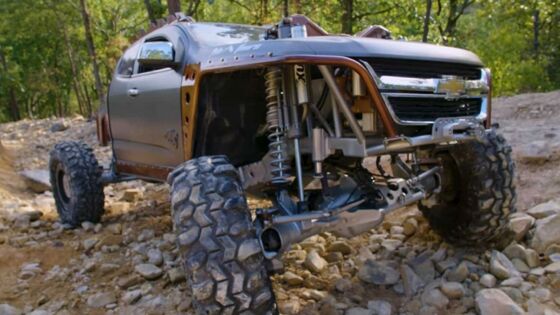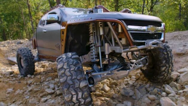 Тюнинговое ателье из Калифорнии Fab Fours создало настоящий монстр-трак на основе пикапа Chevrolet Colorado. Получившаяся машина получила имя Kymera, а отчет о своем проекте мастера выложили на YouTube-канале. В качестве базы для своего проекта конструкторы взяли Chevrolet Colorado 2015 модельного года. Начать они решили с того, что перенесли 5,9-литровый дизельный V8 от Cummins из-под капота назад, а также оснастили двумя турбокомпрессорами. Теперь каждое нажатие на педаль акселератора вызывает клубы черного дыма из выхлопной системы, а на колёса передаётся невероятная мощь в 650 лошадиных сил. Помимо силового агрегата тюнеры полностью переделали подвеску автомобиля. В новом варианте используется амортизаторы Fox и пружины, а мосты взяты от военных грузовиков. Машину оснастили системой заднего привода, а значит её размеры не повлияют на маневренность. Получившийся «монстр» великолепно преодолевает любое бездорожье, но на всякий случай у него предусмотрена мощная лебёдка на переднем бампере.