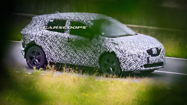 Судя по новым снимкам с испытаний, Qashqai получит купеобразный силуэт, но сохранит фирменную V-образную решетку радиатора.