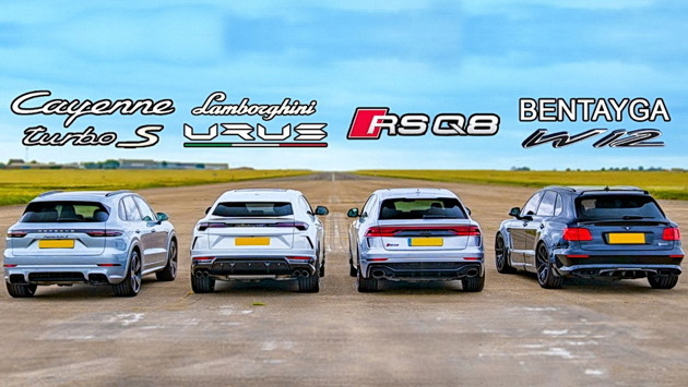 Блогеры YouTube-канала carwow сопоставили четвёрку кроссоверов концерна Volkswagen — Audi RS Q8, Bentley Bentayga, Lamborghini Urus и Porsche Cayenne Turbo S E-Hybrid. Вседорожники сравнили в дрэг-гонке на четверть мили, двух стартах «с хода» в разных режимах и проверили эффективность торможения со 113 километров в час. Величайшая в мире дрэг-гонка: Lamborghini Urus против 11 спорткаров Audi RS Q8 — самая новая и доступная версия спортивного кроссовера на «тележке» MLB Evo. Под капотом 600-сильный (800 Нм) V8 4.0 с двойным наддувом, масса — 2315 килограмов, цена в Великобритании — 101 тысяча фунтов стерлингов (9,0 миллиона рублей). Bentley Bentayga с двигателем W12 дебютировал в 2016 году и уже успел пережить обновление, которое не повлияло на динамику. Кроссовер оснащается 608-сильным (900 Нм) мотором W12 Twin-Turbo, весит 2440 килограммов и стоит от 163 тысяч фунтов стерлингов (14,55 миллиона рублей) Audi RS Q8 Bentley Bentayga Lamborghini Urus Porsche Cayenne Turbo S E-Hybrid Lamborghini Urus оснащается той же «битурбовосьмёркой» 4.0, что и RS Q8, однако агрегат форсирован до 650 лошадиных сил и 850 Нм. Кроссовер итальянской марки легче соперников и весит 2199 килограммов. Цена в Великобритании стартует со 160 тысяч фунтов стерлингов (14,28 миллиона рублей). В Porsche Cayenne Turbo S E-Hybrid бензиновый турбомотор V8 4.0 дополняет электрический «довесок». Результат — 680 лошадиных сил и 900 Нм крутящего момента, однако гибридная надстройка увеличила снаряжённую массу до 2565 килограммов. Цена супергибрида — 123 тысячи фунтов стерлингов (10,98 миллиона рублей). Видео: YouTube-канал carwow Видео: кто победит в перетягивании каната, Mercedes-AMG G 63, Bentley Bentayga или Porsche Cayenne? Очень похожие технически модели показали сравнимые результаты: на дистанции 402 метров кроссоверы уложились в 0,2 секунды, а победителя определил фотофиниш. Столь же плотными оказались итоги теста эффективности тормозов: три модели остановились с интервалом менее одного метра. 10 внедорожников, которые заткнут за пояс суперкары