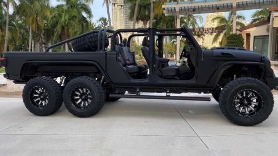 Американская фирма So Flo Jeeps превратила Jeep Gladiator в устрашающего монстра с шестью 38-дюймовыми колёсами и красными «глазами»-фарами. Брутальности пикапу добавляют чёрный матовый окрас и полностью переделанная передняя часть. Такой Gladiator оснастили мощным мотором от Corvette и продают за 140 тысяч долларов (более 10 миллионов рублей по актуальному курсу). По словам авторов проекта, Gladiator-монстр построен на удлинённой раме, имеет колёсную формулу 6х6, дорожный просвет, увеличенный на 120 миллиметров, а ход подвески составляет 355 миллиметров. Переднюю и заднюю подвески оставили без изменений, а рулевое управление доработали. На выбор предложены две модификации пикапа: с «корветтовским» 6,2-литровым бензиновым двигателем мощностью около 500 лошадиных сил либо дизелем, который выдаёт 300 сил. Цены начинаются от 140 и 150 тысяч долларов соответственно. So Flo Jeeps В числе дополнительного оборудования -- интегрированная в передний бампер лебёдка, силовой трубчатый каркас для грузовой платформы, окрашенный в цвет кузова, и опускающиеся подножки. Особое внимание тюнеры уделили передней части пикапа, добавив огненно-красные фары, напоминающие горящие глаза монстра, полностью новый капот с воздухозаборниками и сетчатую фальшрадиаторную решётку. Ранее тюнинг-ателье Hennessey представило свой вариант доработки Jeep Gladiator. Пикап укомплектовали двигателем V8 объемом 6,2 литра, который развивает 1000 лошадиных сил, внедорожными покрышками BF Goodrich KD на 20-дюймовых дисках и силовыми бамперами. Hennessey намеревается выпустить всего 24 таких автомобиля. Источник: So Flo Jeeps