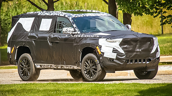 Американская компания тестирует прототип большого SUV с трехрядным салоном и пневматической подвеской, позволяющей увеличивать дорожный просвет до весьма значительных величин.
