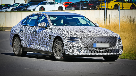 Рядом с гоночной трассой Нюрбургринг заснят закамуфлированный прототип новой версии полноразмерного седана G80. Ряд нюансов указывает на то, что перед нами предвестник экологически чистой модификации. На электрическую суть прототипа указывает заглушка вместо радиаторной решетки. Кроме того, у автомобиля отсутствуют выхлопные патрубки. По предварительным данным, модификация получит индекс eG80. Технические подробности пока неизвестны, за исключением вероятного запаса хода в районе 500 км. Ожидается, что электрический седан получит систему беспилотного управления третьего уровня, разработанную Hyundai Motor Company и Samsung Electronics. Премьера электрокара предположительно состоится в 2021 году.