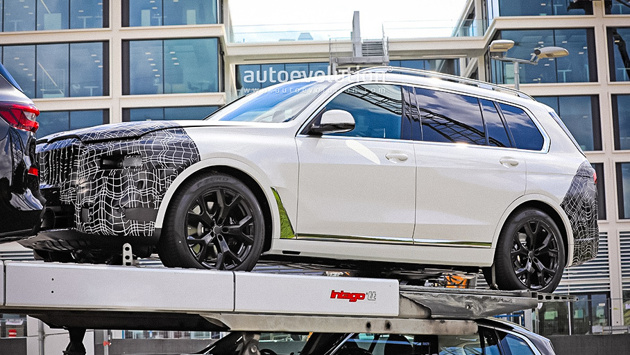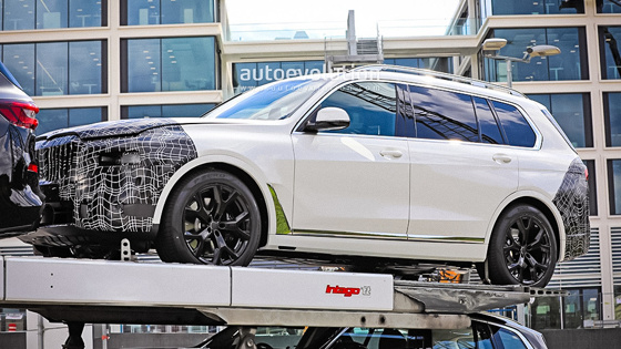 В Сети опубликовали несколько снимков обновленного кроссовера BMW X7, кузов которого частично спрятан под маскировкой. Внимание фотошпионов привлекли необычные фары: они совсем другой другой формы и расположены заметно ниже. Рестайлинговый BMW X7, который пойдет в серию до конца 2021 года, удалось заснять передвигающимся на автовозе в Мюнхене. Главной особенностью прототипа кроссовера стали необычные передние фары, которые, судя по снимкам, будут расположены гораздо ниже, чем те, которыми оснащается нынешний вседорожник. Кроме того, заснятый фрагмент фар не соприкасается с линией капота, в связи с чем, можно предположить, что обновленный X7 получит двухэтажную оптику. Судя по фотографиям, обновленный BMW X7 сохранит прежние габариты и огромные «ноздри» решетки радиатора. Также под камуфляжем можно заметить очертания задних фонарей и бампера, которые на первый взгляд нисколько не изменились. Раскрыта внешность новых BMW M3 и M4 Ожидается, что рестайлинговый X7 лишится трехлитрового дизельного V6, оснащенного четырьмя турбинами, который присутствует в нынешнем поколении моделей версии M50d. Вместо него моторную гамму кроссовера пополнит модификация М45е в виде подзаряжаемого гибрида. Кроме того, из-за низкого спроса модификация M60i с двигателем V12 также не увидит свет. В России BMW X7 предлагается с двигателями мощностью от 249 до 530 лошадиных сил. Все агрегаты работают в паре с восьмидиапазонным «автоматом». Стоимость кроссовера у российских дилеров составляет от 6 660 000 до 10 510 000 рублей. В конце июля компания BMW представила особую версию кроссовера X7 под названием Dark Shadow Edition. Общий тираж издания составит 500 экземпляров, из которых 60 моделей предназначены для российского рынка. Источник: Autoevolution