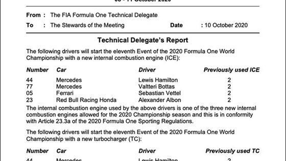 В FIA подтвердили замену элементов силовых установок на пяти машинах. Льюис Хэмилтон, Валттери Боттас и Себастьян Феттель получили третий двигатель внутреннего сгорания, третью турбину и третий мотор-генератор MGU-H. Кроме того, Феттелю заменили накопитель энергии. Алекс Элбон получил третий двигатель внутреннего сгорания и третий MGU-K. Николас Латифи получил второй накопитель энергии и второй блок управляющей электроники. Все замены входят в число разрешенных.