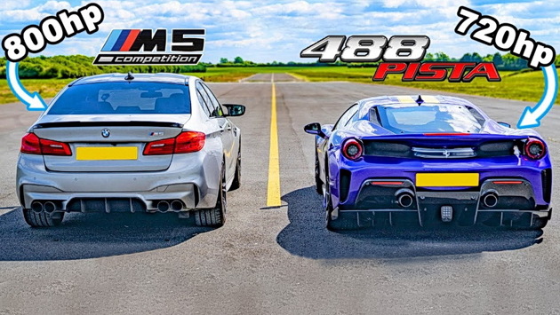 Дрэг-гонка: Ferrari 488 Pista против 800-сильной BMW M5