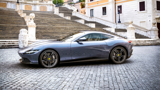 Следом Ferrari представила спорткар Roma, который делит платфомру с Portofino. На модели с минималистичным дизайном в стиле ретро 3,9-литровый V8 выдаёт 620 лошадиных сил и 760 Нм крутящего момента и работает в паре с восьмиступенчатой роботизированной коробкой с двумя сцеплениями от SF90 Stradale. Скорости в 100 километров в час купе достигает за 3,4 секунды, а 200 километров в час – за 9,3 секунды. Максимальная скорость превышает 320 километров в час.