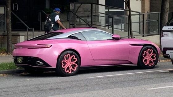 <p><strong>В Канаде заметили Aston Martin DB11 в необычном розовом цвете. Автомобиль украсили темной крышей и элементами декора, а на колесах оказались рисунки в виде пяти сердечек.</strong></p> <p>С виду спорткар напоминает автомобиль, который обычно показывают в фильмах. Видимо, он принадлежит девушке, судя по тому, какой цвет был выбран для тюнинга. Модель представили еще четыре года назад, а под капотом разместили V12 с отдачей в 600 лошадиных сил. Агрегат на 5,2 литра выбрали в турбированном варианте.</p> <p>Максимальная скорость авто достигает 322 км/ч, а на разгон нужно всего 3,9 секунды. Позже разработчики также показали модификацию с мотором V8 под капотом, отдача в данном случае достигла 500 л.с. Самой топовой представленной версией стала комплектация, которая на 30 л.с. мощнее, чем DB11 V12.</p> <p>Отдельно стоит отметить, что стоимость спорткара остается не бюджетной, а потому столь интересный тюнинг дорогой модели можно увидеть на обычных дорогах нечасто.</p>
