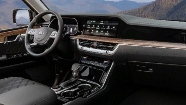 Салон понравится фанатам машин премиум-класса. Здесь имеются стильный «мультируль» с несколькими спицами, виртуальный «инструментарий», центральный широкоформатный экран и топовая цифровая приборка. Блоки климат-контроля и регулировки аудиосистемой ныне умеют воспринимать голосовое управление. Аналитиков слегка при этом расстроил вышеупомянутый руль в нем нет опции регулировки по вылету, что присутствует в более дешевых проектах южнокорейцев. Двигатель получил объем в три литра и мощность 249 лошадиных сил.