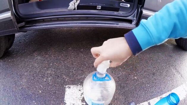 Применение. Состав можно нанести на окна машины, в том числе и боковые, при помощи пульверизатора. Но намного проще будет залить его в бачок омывателя. Порядок действий будет следующий: