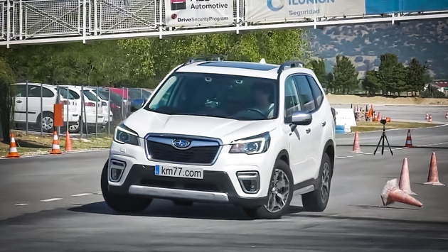 Для испытаний был выбран гибридный Subaru Forester 2019 модельного года, оснащённый двухлитровым двигателем мощностью 150 лошадиных сил, вариатором и полным приводом. Традиционно испанцы протестировали автомобиль на треке с выставленными конусами, между которыми машина должна проехать на разных скоростях -- так проверяется ее устойчивость во время резких манёвров.