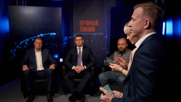 Заместитель руководителя Федерального агентства по техническому регулированию и метрологии (Росстандарт) Алексей Кулешов, координатор движения «Общество синих ведёрок» Пётр Шкуматов, эфир «Прямой линии» провели Антон Комолов и Алёна Огнева