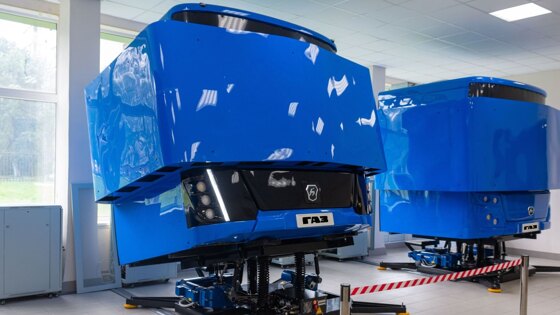 Власти Москвы активно развивают общественный транспорт — каждый год открываются новые станции метро, создаются новые наземные маршруты, на которые выходят автобусы и электробусы. Для подготовки их водителей столичный перевозчик "Мосгортранс" получил три тренажёра-симулятора, которые позволяют имитировать дорожное движение в виртуальной реальности. "Обучающая система имитирует поездки на реальных маршрутах Москвы. За рулём симулятора водитель отрабатывает полный спектр маневров: заезд и выезд с остановки, остановка на светофоре, проезд пешеходных переходов, перестроение на другую полосу и т.д. Особое внимание уделяется освоению всех вариантов экстренного торможения. Кроме того тренажёр помогает отрабатывать действия водителя в нештатных ситуациях, связанных со сложными погодными условиями или нарушениями со стороны других участников дорожного движения. Например, «подрезание» легковым автомобилем, выбегание пешехода на проезжую часть, выезд на встречную полосу, маневрирование в условиях закрытого обзора и прочее", — пояснила "Группа ГАЗ", которая и поставила "Мосгортрансу" тренажёры. Каждый из симуляторов соответствует своему автобусу — тренажёры имитируют 12-метровый автобус ЛиАЗ-5292, 18-метровый сочленённый автобус-"гармошку" ЛиАЗ-6213 и электробус ЛиАЗ-6274. Кабина каждого транспортного средства установлена на гидравлические опоры, а лобовое стекло заменено экраном, создающим изображение на 180 градусов. В сочетании со встроенной акустикой электроника позволяет реалистично имитировать дорожную обстановку.