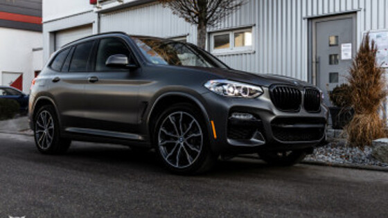 Цвет Satin Pearl Grey делает BMW X3 по-настоящему привлекательным. Этому способствуют темные детали глянцевого пакета BMW Individual Shadow Line с расширенными функциями: как обрамление почек в глянцевом черном цвете, так и накладки на выхлопные трубы из черного хрома вносят свой вклад в особый внешний вид. Солнцезащитное стекло на средней стойке, которое также почти черное в зависимости от угла обзора, завершает темный вид.