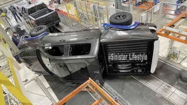 Как стало известно, инцидент произошел во время снятия автомобиля с конвейера. По какой-то причине пикап завалился на бок и упал. На фотографиях, слитых в интернет, видно, что машина пострадала не так уж сильно — повреждены лишь левый бок и правое крыло.