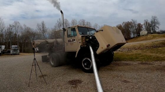 Сначала Cummins не хотел всасывать достаточное количество грязи, но ребята нашли способ с этим справиться. Вскоре двигатель работал словно пылесос, опустошая ведро с землей. Двигатель заглох трижды, прежде чем заснуть навсегда. Ребята также впрыскивали вместе с грязью эфир, чтобы мотор продолжал тарахтеть как можно дольше.