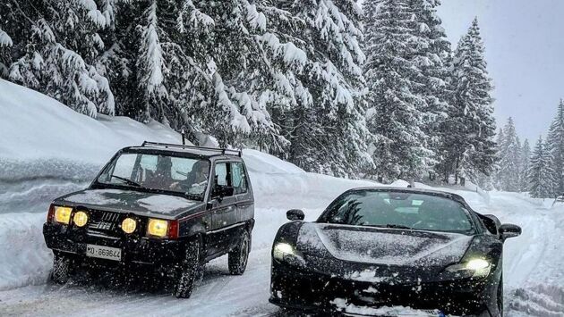 Противник на фоне старенького «Фиата» выглядит несоразмерно круче. Ferrari SF90 Stradale был представлен в 2019 году. Он тоже имеет полный привод, но реализованный принципиально отличным от Panda способом. Гиперкар может похвастаться четырьмя моторами — один бензиновый V8 и три электродвигателя. Совокупно этот агрегат способен выдавать ровно тысячу «лошадей». А это, к слову, в 20 раз мощнее, чем у его соперника по гонке.