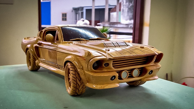 В своей работе вьетнамский специалист использовал вечнозеленое дерево Фокиения, которое относится к семейству кипарисовых. Ford Mustang GT500 выполнен в масштабе 1:10. На создание копии машины, которую он изготовил при помощи обычного молотка и лобзика, мастер потратил 30 дней.