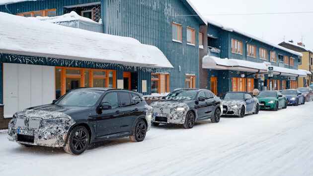 BMW создала вымышленный город под названием M, где улицы ровные, погода хорошая, и все водят M-модель. Однако компания скрывает темный секрет, поскольку настоящий M Town на самом деле тестируется далеко не в таких условиях. Новинку ждет снег и минусовые температуры в Северной Европе. На обнародованных фотошпионами снимках кроме обновленных X3 M и X4 M можно увидеть совершенно новый кабриолет M4. Еще дальше появляются два купе M4. Это впечатляющая коллекция моделей M, но на этот раз стоит сосредоточиться на X3 M 2022 модельного года. Новинка получит небольшое обновление, которое включает обновленную панель, переработанную решетку радиатора и более тонкие фары. Говоря о последнем, они включают новые светодиодные дневные ходовые огни, которые отказываются от нынешней C-образной формы. Ниже представлен обновленный воздухозаборник, в котором больше нет акцента, напоминающего мост. Дополнительные изменения ограничены, но у авто может появится новый задний бампер, а также обновленные задние фонари. В интерьере кроссовер получит большую информационно-развлекательную систему с новейшим программным обеспечением. Модель также может пойти по стопам M3 и M4, получив от разработчиков новый переключатель, обновленное распределительное устройство и переработанный контроллер iDrive. Под капотом мы можем ожидать знакомый твин-турбо 3,0-литровый 6-цилиндровый двигатель мощностью на 473 лошадиных сил и 598 Нм крутящего момента в базовой комплектации. Переход к варианту Competition должен увеличить этот показатель как минимум до 503 л.с. Ожидается, что обновленный BMW X3 M дебютирует в конце этого года, но точное время остается загадкой. Читайте также о том, что BMW M показал рекордные продажи в 2020 году и подтвердил M5 CS на 2021 год.