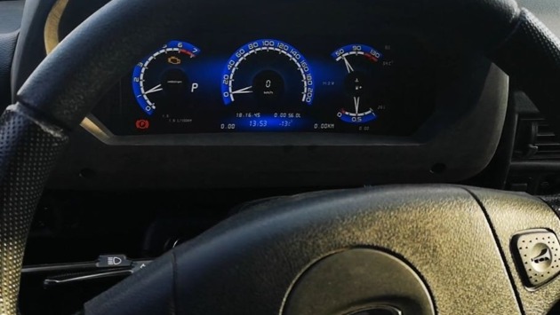 Цифровая комбинация приборов уже готова, и в настоящее время «Тюн-Авто» занимается созданием козырька. Пока он существует только в виде макета, напечатанного на 3D-принтере, но уже в скором времени будет разработана литьевая форма, чтобы козырек выглядел фабрично. Установка и подключение щитка не требует специальных доработок, а в комплекте идет брелок, который позволяет выбирать один из нескольких дизайнов оформления шкал.