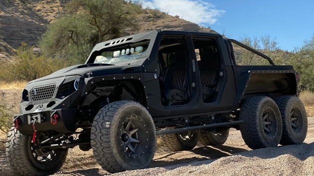 В американском штате Флорида выставили на продажу модифицированный Jeep Gladiator SF 6x6G, который тюнеры превратили в шестиколесный пикап с тремя осями. За необычный автомобиль с усиленным кузовом удалось выручить 175 000 долларов (примерно 13,3 миллиона рублей по текущему курсу).