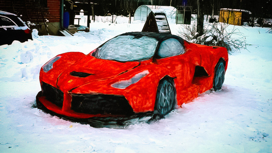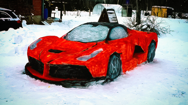 Семейная пара из Литвы, будучи поклонниками спортивных автомобилей, создали снежную копию Ferrari LaFerrari в масштабе 1:1. Для постройки реплики энтузиасты использовали обычный шпатель и экологически чистую краску.