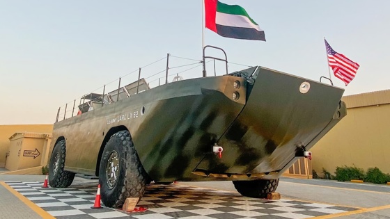 Музей истории внедорожной техники в Дубае (Off Road History Museum) пополнился новым экспонатом. Несколько дней назад туда своим ходом приехал самый большой в мире автомобиль с колесной формулой 4x4 — американский плавающий транспортер LARC-LX.
