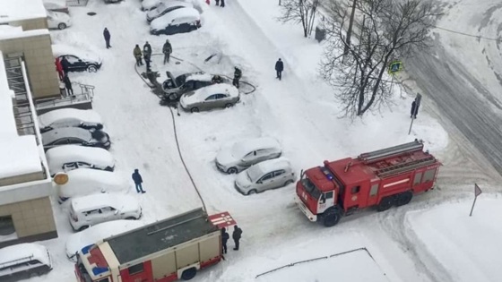 Экстренное спасение: Мужчины закидывают снегом горящее авто в Балашихе
