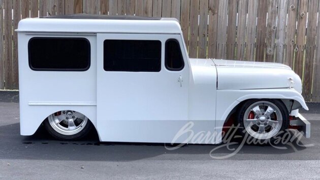 Транспортное средство, на базе которого строили хот-род, выставленный на аукцион, использовалось в качестве почтовой машины. Данную модель подготавливали для участия в фестивале SEMA.