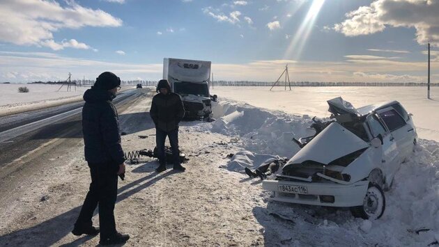 В Татарстане грузовой фургон раздавил авто с женщиной и двумя детьми