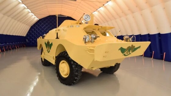 Бронемашины линейки БРДМ-2, использовались не только у нас в стране, но и экспортировались в дружественные страны. Экземпляр, о котором пойдет речь, окрашен в песочный цвет и имеет хромированные элементы.