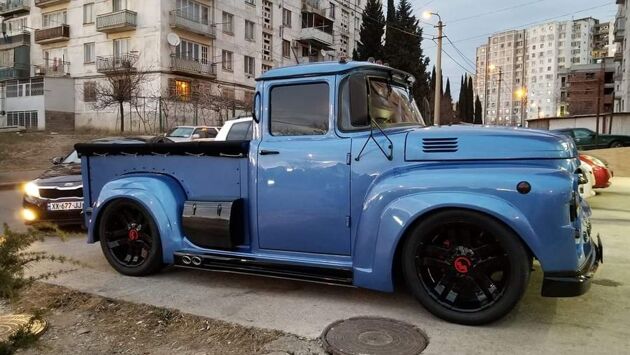 Свое творение авторы проекта назвали Сustom ZIL 130 Pick Up. Советский рабочий грузовик в умелых руках получил современный аэродинамический обвес, моментально преобразивший внешний вид авто. Кузов выкрасили в сине-фиолетовый металлик, а декоративные элементы — в угольно-черный цвет. Например, колесные диски, оба бампера, круглые плафоны передних фар и поперечину на радиаторной решетке.