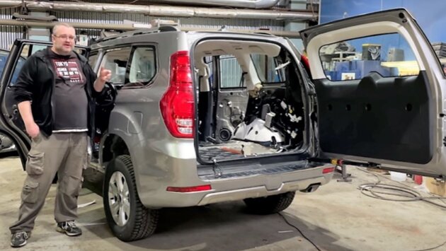 Основной задачей этой разборки было сравнение авто с внедорожной версией Toyota Land Cruiser. При этом блогер обнаружил массу решений, которые напоминают «японца». Среди плюсов эксперт отметил большие дефлекторы, подающие воздух к радиатору. Каждый болт и разъём промаркирован краской. Речь идет о своего рода контроле качества.