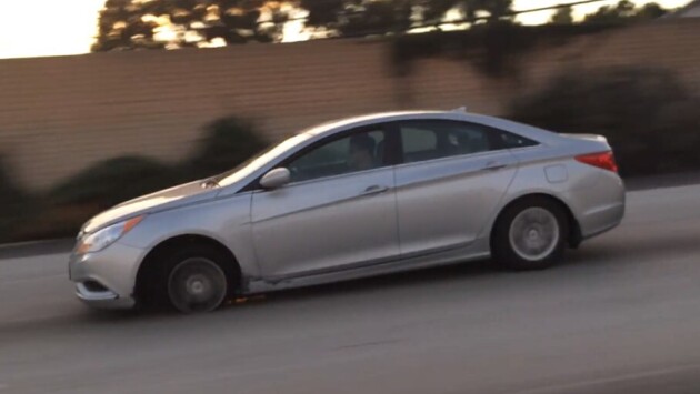 На трассе в калифорнийском городе Лонг-Бич очевидцы засняли Hyundai Sonata шестого поколения, которая едет с полностью отсутствующей передней шиной. На ролике, появившемся на YouTube-канале ViralHog, видно, как колесо скользит по дороге, пуская искры.