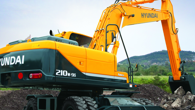 Международная интеграция шагнула далеко вперед, стирая границы стран и континентов. Американские экскаваторы Caterpillar собирают в Китае, европейское Volvo — в Южной Корее, корейские Hyundai — в Бразилии. С одним из представителей международной системы глобализации – 20,5-тонным Hyundai R210W-9S последнего поколения, собранного на заводе в Южной Корее, мы и познакомимся. Существует мнение, что 20 тонный колесный экскаватор – машина сравнительно небольшая, потому размеры и ярко-жёлтая окраска R210W-9S -производят впечатление. Полная длина 9,5 метров, ширина 2,5 метра, высота 3,15 м. Под стать размерам и параметры машины: с 5,65 метровой стрелой, рукоятью длиной 2,92 м, ковшом вместимостью 1,1 м3 и частотой вращения поворотной платформы 10,5 об/ мин. Экскаватор копает в глубину на 6,73 м и ему вполне по силам разработка котлована для многоэтажного дома. Его рабочее место – крупная строительная площадка, склад или даже карьер. Добавим к этому мобильность машины, а значит, возможность перемещаться между объектами без привлечения дополнительного транспортного средства и согласования с ГИБДД. В нашем варианте экскаватор был укомплектован передними выносными опорами и задним бульдозерным отвалом, гидролинией (требуется для работы с навесным оборудованием) которые, в принципе, давно стали стандартным оборудованием для всех колесных экскаваторов. Подкупает простота и легкость управления этой машиной. На изменение положения джойстиков экскаватор реагирует легко и плавно, нет никакой резкости, избыточной чувствительности. Функции между джойстиками распределены по стандартной европейской схеме: левый – рукоять и поворот платформы, правый – стрела и ковш. Экскаватор копает без малейших видимых усилий, благодаря удачно подобранной паре двигателя HYUNDAI и гидравлического насоса Kawasaki . Передвигается с объекта на объект также легко и непринужденно (со скоростью до 30км/ч), поскольку комплектуется проверенными мостами и коробкой передач известной немецкой фирмы ZF В машине хороший обзор во всех направлениях, за счет большой площади остекления. Стеклоочиститель, не ограничивает обзор и вместе со стеклом поднимается под крышу кабины. Кабина вынесена вперед, за точку опоры стрелы, и поднятая стрела не заслоняет обзор вправо при вращении платформы по часовой стрелке, что создает условия для спокойной и безопасной работы. Вместе с тем при установке экскаватора на месте работ и подаче к нему самосвала, следует принимать во внимание немалый радиус поворота противовеса платформы – 2,8 м. Хотя и это не страшно, поскольку в кабине установлена камера заднего обзора, благодаря которой устранены все невидимые зоны в задней части машин. Конструкторы Hyundai исповедуют концепцию максимального упрощенного управления машиной. С этой целью в кабине оператор может установить один из трех предустановленных режимов работы или полностью создать свой – индивидуальный. Техника Hyundai поставляется в Россию не первый день, и практика показала, что для эксплуатации в средней полосе России нет необходимости дополнительно ее «адаптировать» под наши температуры. Стандартная комплектация в полной мере соответствует российскому климату, а для поставок в регионы с более холодным климатом проводится «арктическая» подготовка. Продуманы условия для простого и безопасного ежедневного и периодическо