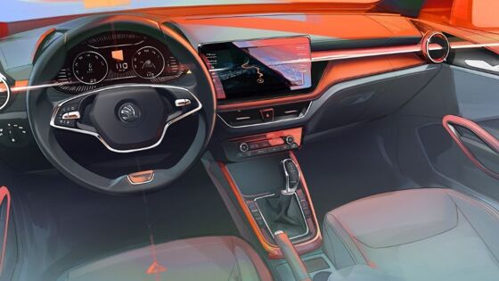 За несколько недель до официальной премьеры компания Skoda опубликовала первый эскиз интерьера Fabia четвёртого поколения. Новый хэтчбек получит двухцветный салон, а также современные мультимедийные системы.