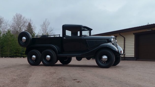 В Сети показали уникальный трехосный пикап ГАЗ-21 из СССР