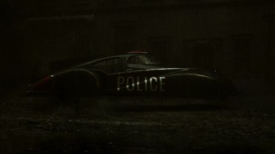 Узкие фары и большие решетки радиатора с хромированными молдингами и узкие, словно зарешеченные половинки заднего окна только усиливают эффект. Создатели анимационного фильма также сознательно не стали делать проблесковый маячок двухцветным, как в большинстве полицейских автомобилей по всему миру — исключительно зловещий красный цвет.