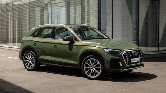 Два новых цвета в дополнение к десятку сохранившихся прежних — это District Green и Ultra Blue. И если ярко-синий под светом вспышек фотографа выглядит более сочным, то в жизни всё наоборот. Первыми коллеги расхватали именно эффектные болотно-зелёные Q5, которые в реальности выглядят ярче, чем на фотографиях. Оба окраса требуют доплаты в 60 тысяч рублей.