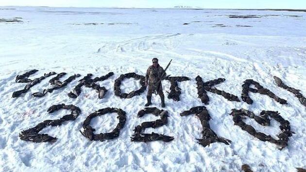 Полиция Чукотки ищет охотника, который сфотографировался на фоне сотни убитых диких гусей. Фото размещено в социальных сетях, — сообщает «Коммерсантъ». Весенняя охота на водоплавающую дичь на Чукотке началась 15 мая. Обладателям лицензии разрешено добыть одного гуся в день и не более пяти за весь период охоты. На фотографиях же, которые вызвали общественной резонанс, убитыми животными выложена надпись: «Чукотка 2021».