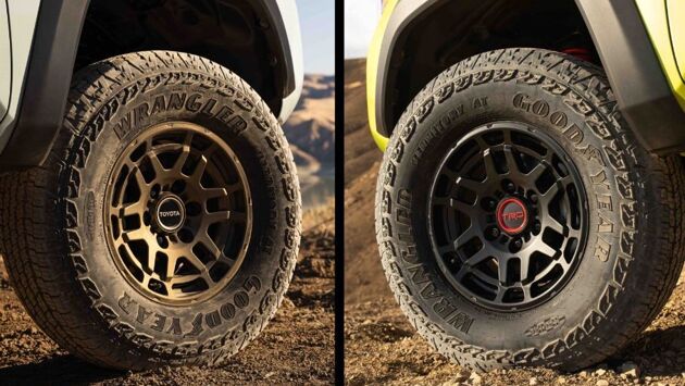 На этот раз компания решилась на кардинальные изменения. На опубликованной фотографии представлено два разных пикапа, у которых можно рассмотреть колёсные диски. Один выполнен в бронзовом цвете с ретро-логотипом марки, а на втором разместили эмблему TRD. Однако специалистов заинтересовал цвет внедорожного исполнения Tacoma. Если классическая версия пикапа окрашена в анонсированный ранее цвет лунного камня Lunar Rock, то для Tacoma TRD подготовили новый ярко-желтый цвет кузова, который компания ранее никогда не использовала в своих моделях.